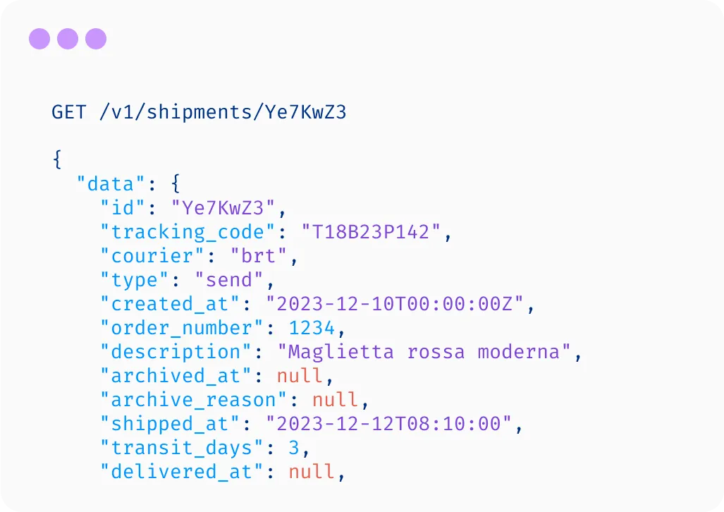 Per integrazioni avanzate, le nostre API per sviluppatori permettono di gestire le spedizioni e ottenerne il tracking.