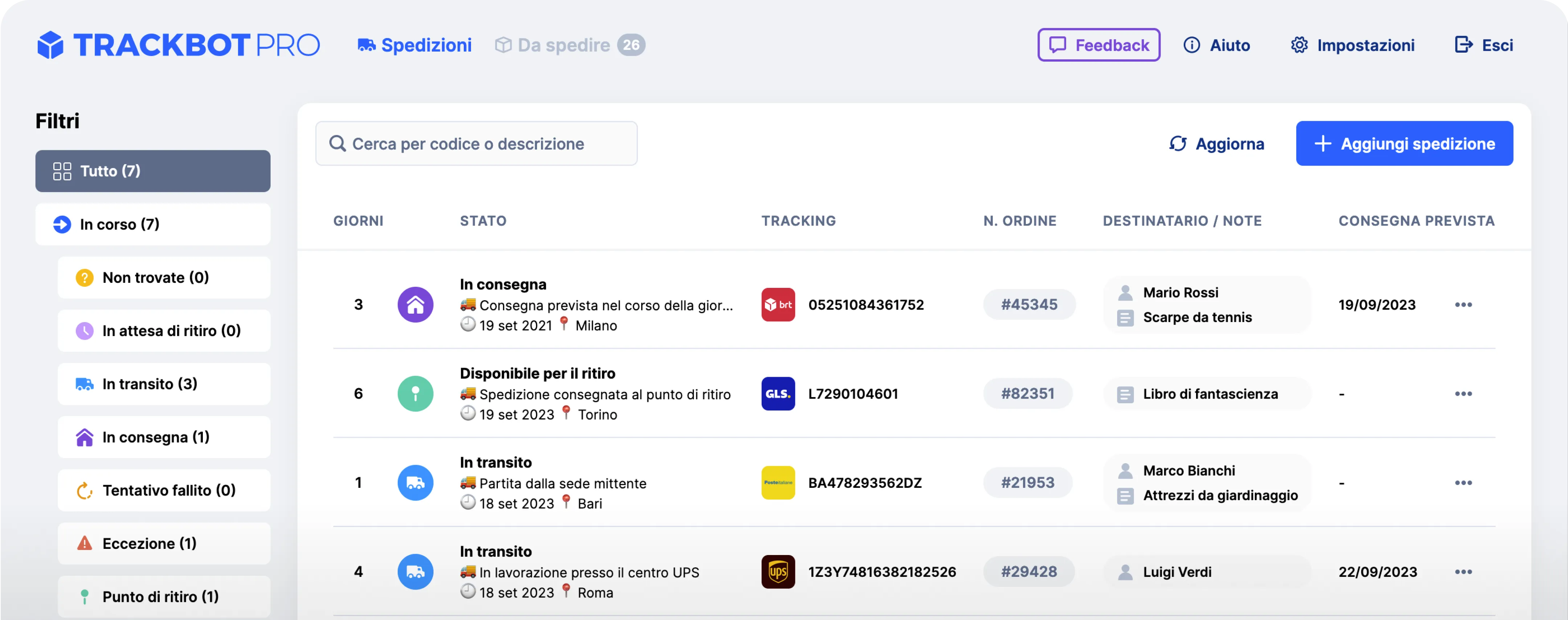 TrackBot Pro è la soluzione perfetta per monitorare le spedizioni della tua attività. Automatizza l'importazione e lascia gestire notifiche e tracking a noi!